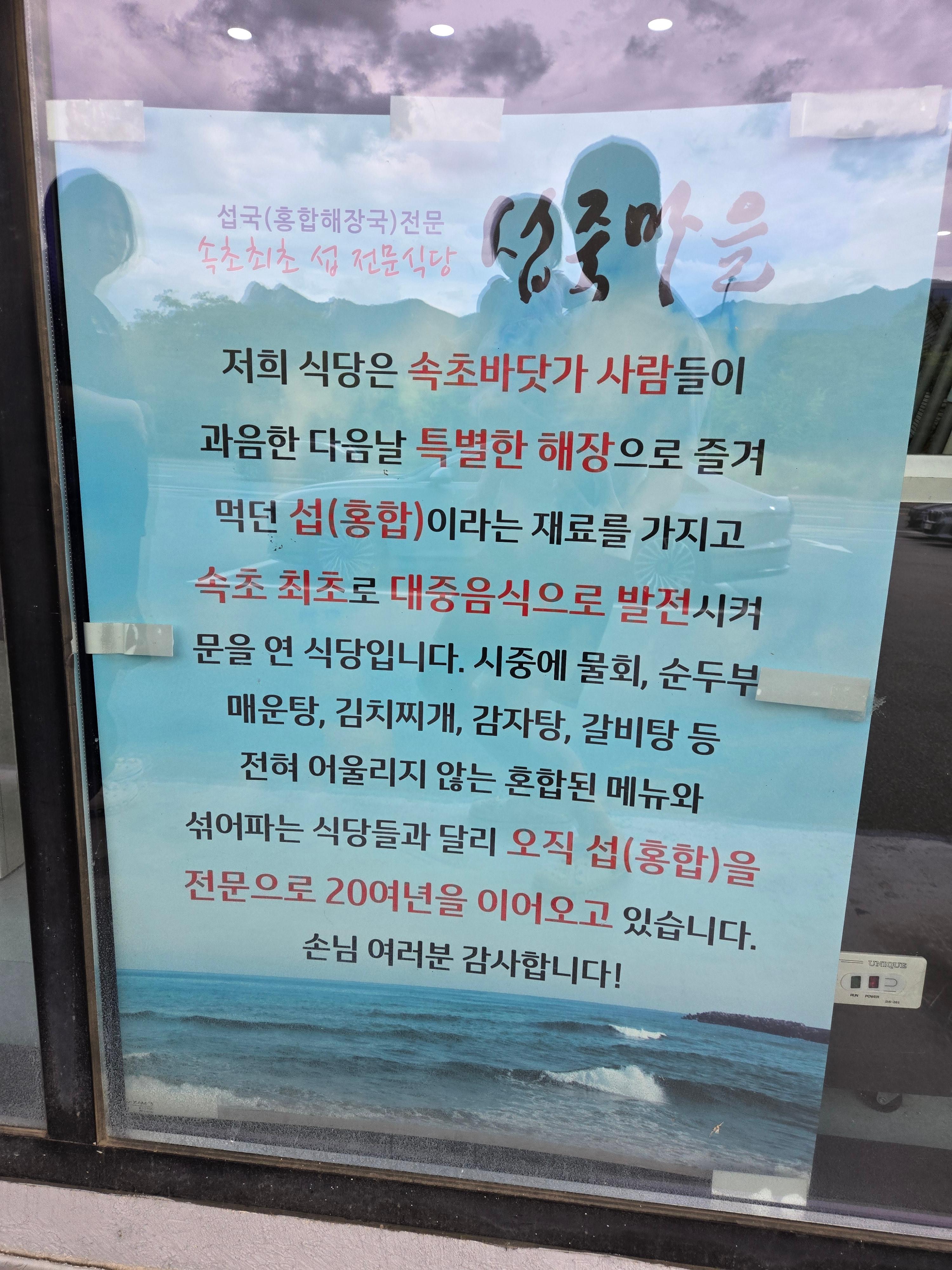 속초에서 해장국을 찾으신다면, 저는 섭죽마을을 강력 추천합니다.